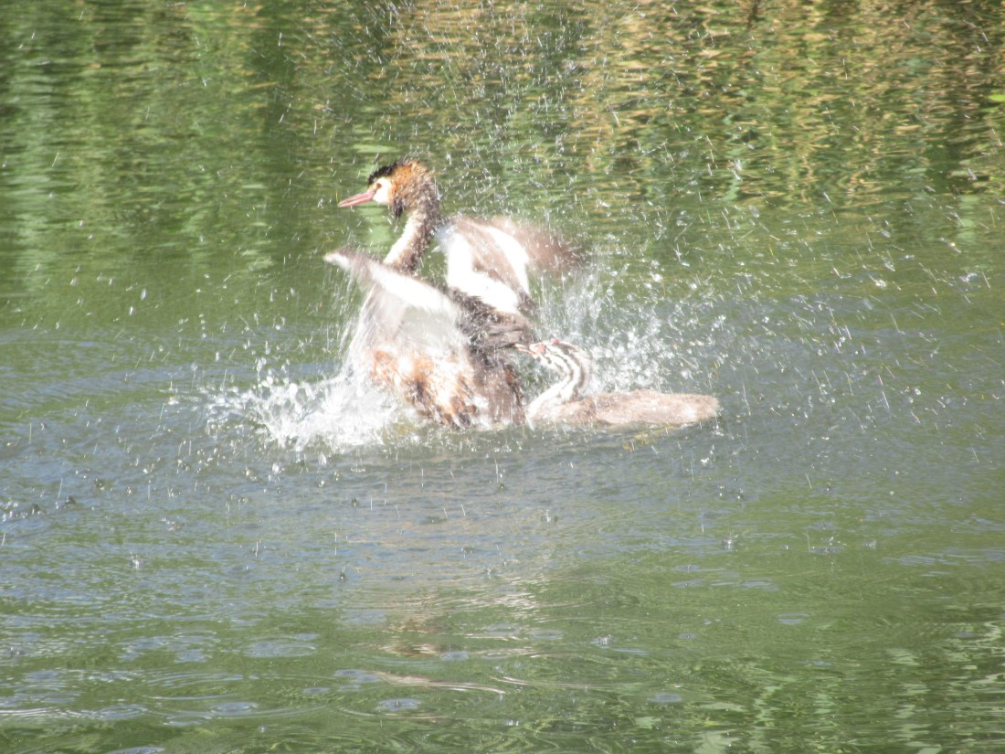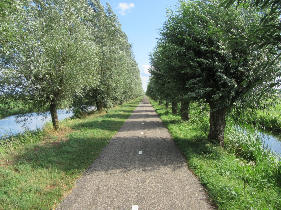 Biking out of town to see a castle – like you do, ya know – I spot this dotted line in the street. “Let’s go back, I need a photo of that!”Can’t resist this mumma koot and baby β€De Haar Castle – built for a wealthy baron (ya think?) between 1892 – 1912.This is the “little chalet” attached to the castle, used for entertaining guests!After touring the castle and grounds we bike back to Utrecht passing many farms.These grebes were such fun to watch. Evidently, mom/dad was trying to give this baby a strong hint that it was time to move out on it’s own πNice bike paths, keeping people off the roads and safe.