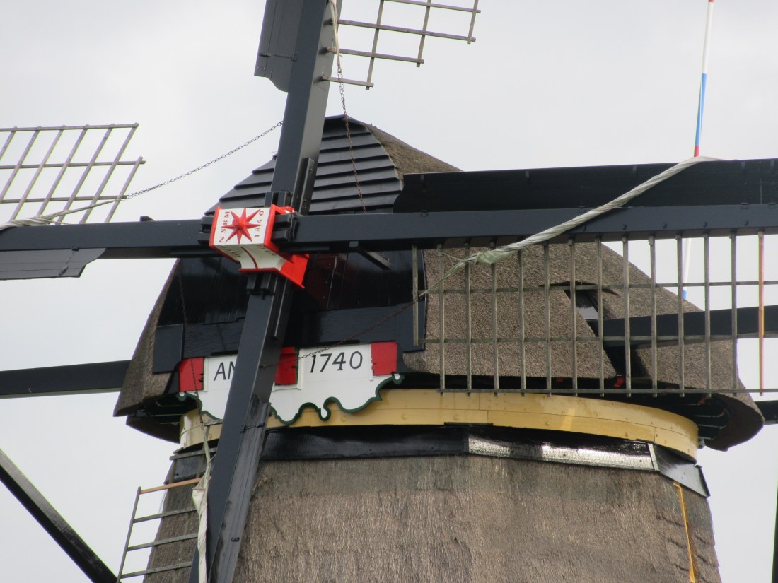 Visited Kinderdijk today – where we saw 19 preserved windmills built in the 17th & 18th centuries.It’s been on our bucket list.It did not disappoint.Great fun to ride the path and look at them.When people join together to solve a problem they can come up with some amazing ideas!Really fascinating to learn how the Dutch figured out how to get water out of their fields and back into the canals to prevent flooding. The U.S. really should be talking to the Netherlands now before we start having those same issues.This one built in 1740 – lovely!