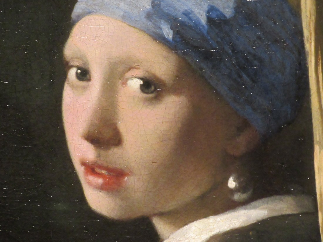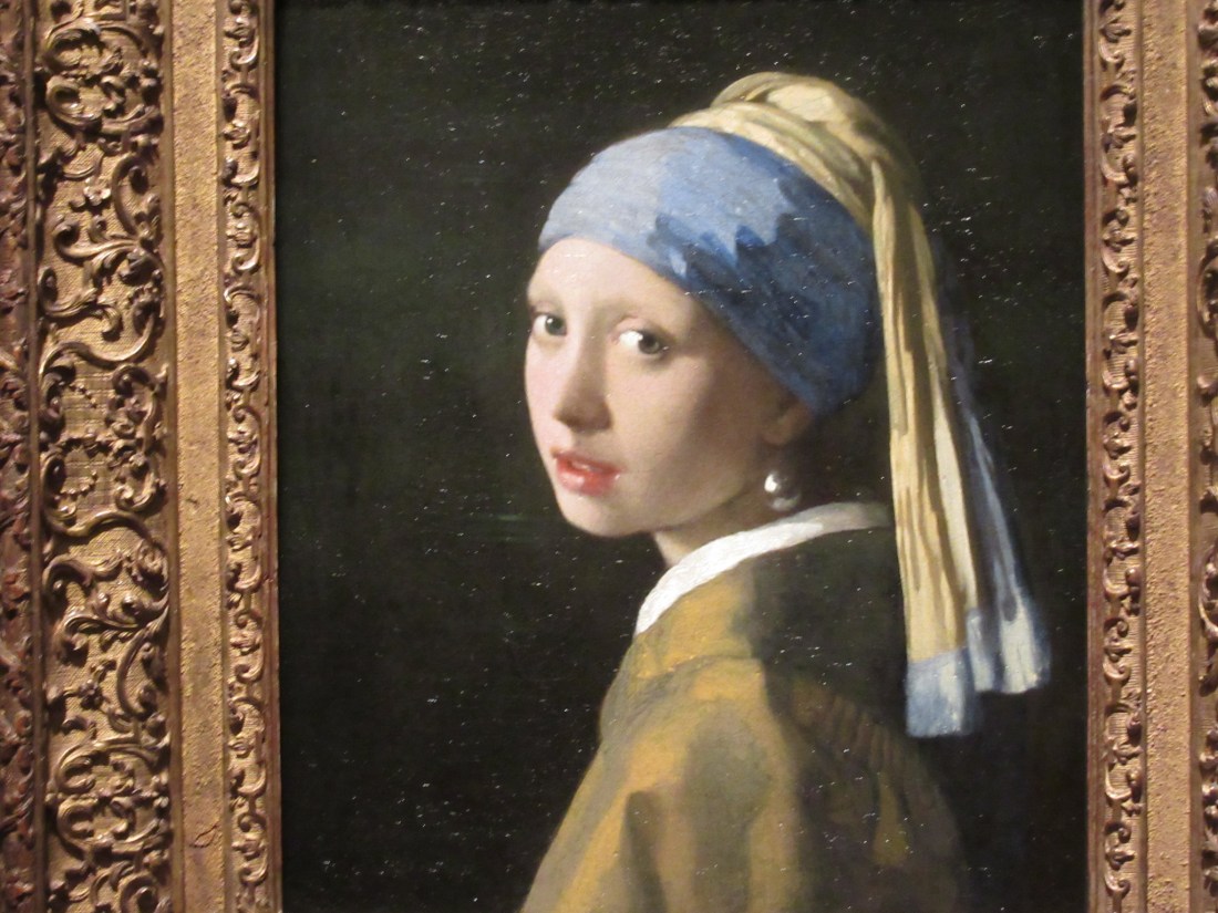 Remember when we were in Delft and went to Vermeer’s museum we saw none of his original art? This is probably one of his most well known paintings, yes? I have to say it was very impressive in “real life”.