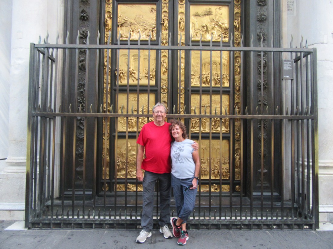 Built in the 11th century, atop Roman foundations, this is Florence’s oldest surviving building – one thousand years old. The Bapistry is known for it’s bronze doors. The most famous ones are these east doors that face the Duomo. Ghiberti spent 27 years (1425-1452) working on these panels. Murph and I ran over to see the doors one morning just after sunrise.
