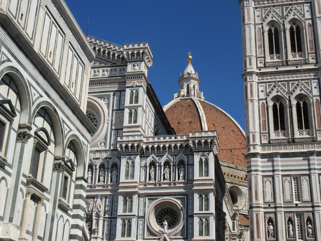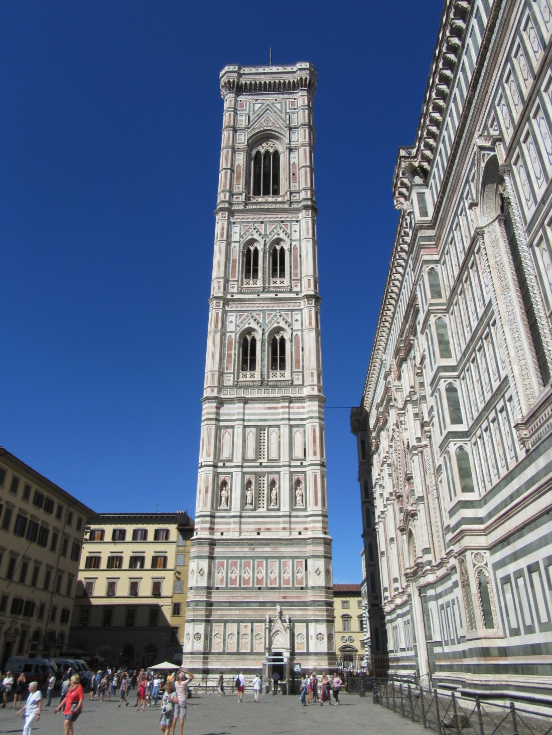 Iconic photo of Giatto’s tower (right), Brunelleschi’s Dome (in back), Duomo or Cathedral (center) and Bapistry (left). Breathtaking marble workmanship!