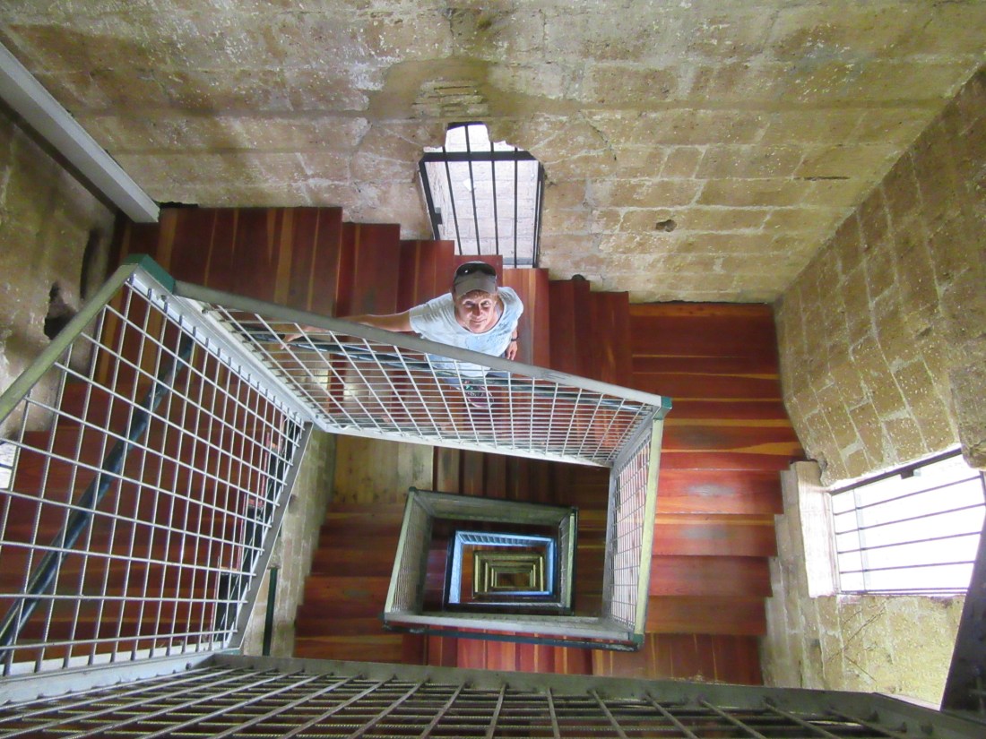 Easiest tower steps EVER!!! Wooden – evenly sized and spaced. Never seen the likes of these. Such a breeze to climb!