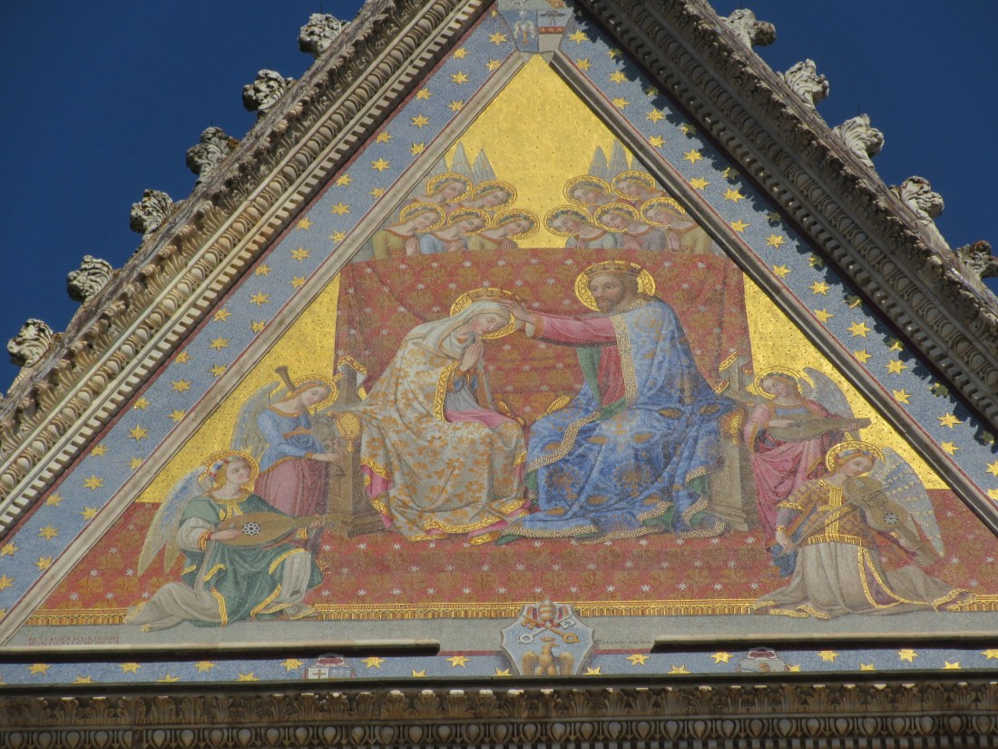 Orvieto’s cathedral has Italy’s liveliest facade. This colorful, prickly Gothic facade divided by four pillars, has been compared to a medieval altarpiece.