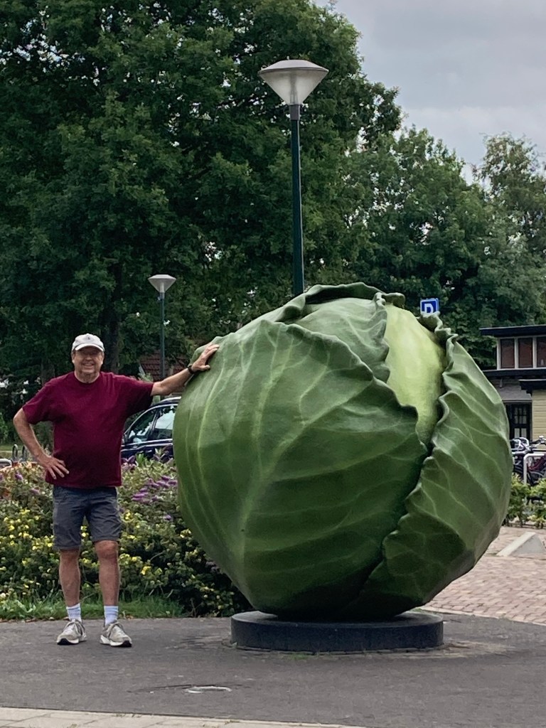 While biking through the country side we realized our bike tires were a bit low. As we pulled into a town, I spotted this giant cabbage.