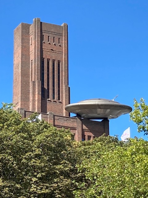 There’s some fun art around the city – like this flying saucer perched on a building.
