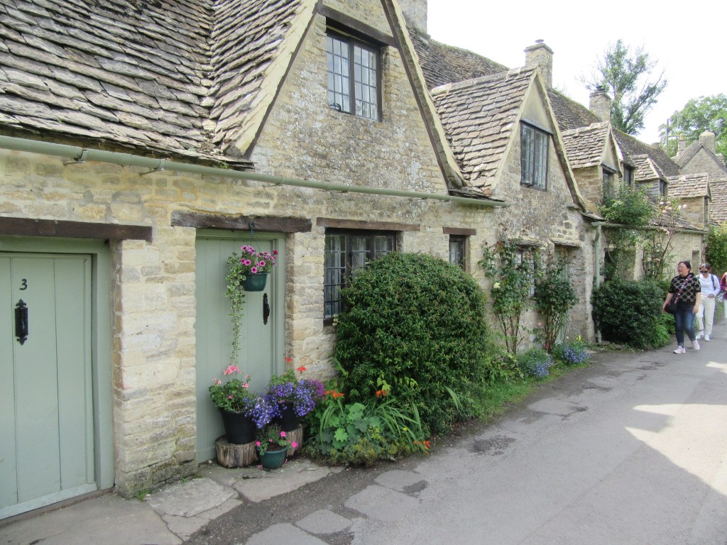 Along the way we stopped to admire the view when we saw a wiggly black spot out in the field. “Murph, I think that’s a new born calf!” Sure enough, we waited and watched for about 15 minutes until it found it legs.And stumbled over to mom to nurse.Arriving in Bibury we went to this 12th century row of weaver’s cottages. Now privately owned and protected by the National Trust.Very quaint – if you can put up with the tourists during the warm months, I think it would be a lovely place to live. Stopped to watch these beauties preen for a LONG time. Very fastidious!So worth all that work!Heading back to the car and following the sign posts along the way.Often across farmer’s fields (public footpaths).Serene pastures to wander past.Have I mentioned flowers? July was very wet and cool and the flowers are thepay off ❤️