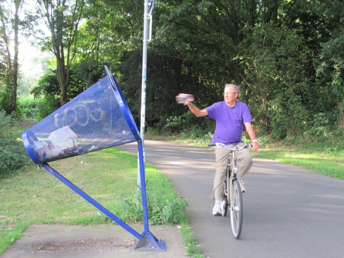 Check out this trash can that we came across at the park. So many people cycle here that even the bins are suited for pitching in while riding by!